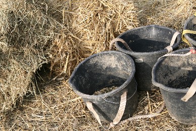 Einstreu und tägliches ausmisten, zwei Mal täglich füttern mit Hafer, Gerste oder Kraftfutter,