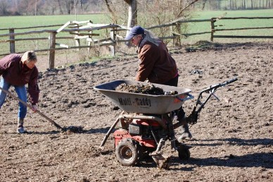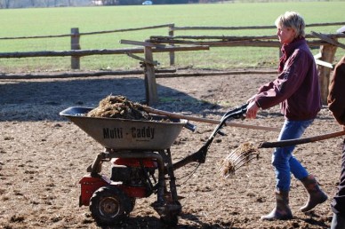 Auch die Mitglieder der Stallgemeinschaft schonen wir beim abendlichen "Pferde-Reinhol-Dienst" kräftemäßig. Durch die motorgetriebene Schubkarre bleiben Euch genügend Kräfte fürs Hobby "Pferd".